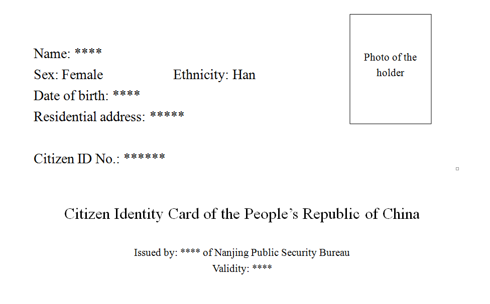 身份證英文版